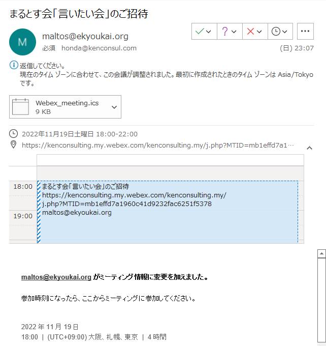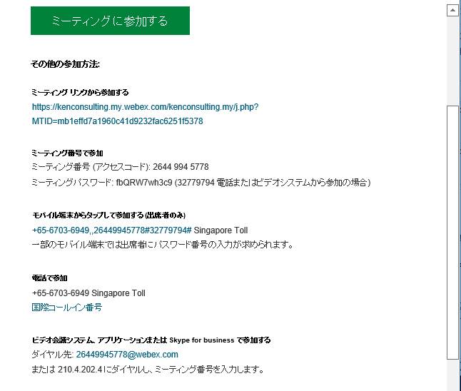 3. 上記メールには会議を開く日時を表示してあります。この時間になったら、メールの緑色のバナー ご注意;この招待メールの 4. その後の手順はご使用の環境によって少し変わります。 ①