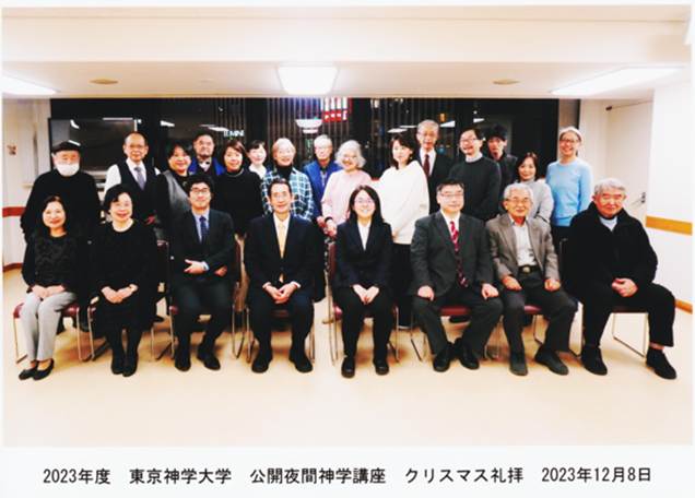 Site https://hiram.tokyo メール support@hiramu.net l 「聖書輪読会」は4月25日(木)午後8時(20時)から90分開きます。エゼキエル書の33章から30分輪読し、今村あずさ牧師から解説の後感想などを語り合います。どなたでもご参加ください。 34. まるとす会の2024年度の総会が6月29日(土)にあります。 まるとす会の2024年度総会を6月29日(土)に東京神学大学で開きます。委員会から近い内に招待状をお送りします。会員の皆様は予定に入れてください。なお、この総会はWebexを使ってオンラインでも開催します。 33. 東京神学大学公開夜間講座2023年度修了式がありました。2024年度の開講式は4月8日(月)於銀座教会の予定です。 夜間講座の2023年度修了式が3月11日(月)18時から銀座教会5階「ぶどう」であり、本多(委員長)と南光(副委員長)が出席しました。今回の修了生は76期生が3吊、科目受講生が1吊でした。科目受講生は足掛け5年で晴れて修了式を迎えました。修了おめでとうございます。修了生には早速まるとす会に入会して頂きました。 まるとす会会員は自分の教会で、夜間講座を受講しそうな人に声をかけ、夜間講座を以前の様に賑やかなものにしましょう。 32. まるとす会、2024年度の委員を公募します。 まるとす会の2024年度が2024年4月1日から始まります。現委員達の任期は2024年3月末日をもって満了となります。これに伴い、2023年度の委員を公募することになりました。次期委員として、まるとす会の運営に関りたいと思う方は、どうぞ立候補のご意志をメールsupport@ekyoukai.orgでお知らせください。ビデオ会議で委員会を開きますので、東京近辺にお住いでない方でも立候補して頂けます。次期委員候補たちの間で2024年度の活動を話し合い、計画を立てましょう。 31.2024年最初の「言いたい会」は公開夜間講座のお世話をして頂いている山下泰嗣牧師をお招きし、夜間講座についてあれこれ語り合いました。 この録音を聴くにはここをクリック。山下牧師がまるとす会に何を望んでおられるか、が語られています。 30. 夜間講座の2023年クリスマス礼拝の写真