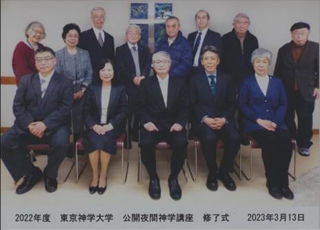 最初の30分は旧約聖書の箴言を1人2節くらいずつ読み。その後30分くらい雑談をします。(リーダー;西大井教会牧師 今村あずさ) ご参加をお待ちします。 14. 東京神学大学公開夜間神学講座の75期修了式、77期開講式に出席しました。 2023年3月13日、75期の修了式に本多(委員長)、南光(副委員長)が参加し、まるとす会への加入をお薦めして来ました。75期の修了生は2吊、科目受講の修了生は2吊でした。これを増やすにはどうすべきか、共に考えてゆきたいものです。又、同4月10日、77期の開講式があり、両吊がまるとす会のご紹介をして来ました。